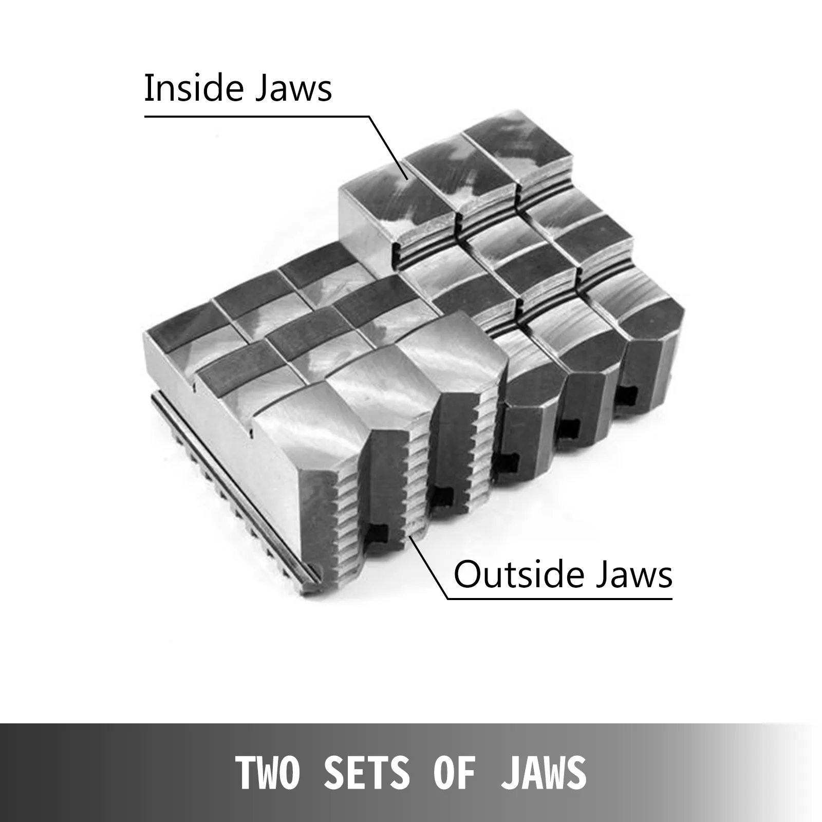 【INTERNE & EXTERNE BACKEN】 - Das Drei-Backen-Drehmaschinenfutter ist innen und außen mit zwei Backensätzen ausgestattet, um den Spannbereich zu erweitern, sodass Sie eine Vielzahl von Lagergrößen handhaben können.