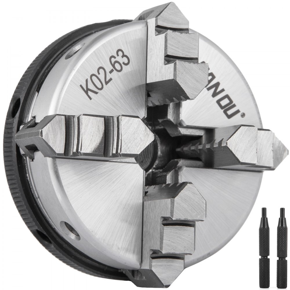 【PREMIUM MATERIAL】 - Durchmesser: 63 mm. Das selbst zentrierende 4-Backen-Drehfutter besteht aus Qualitätsstahl, der strenge Qualitätsprüfungen bestanden hat. So ist es starr und langlebig.