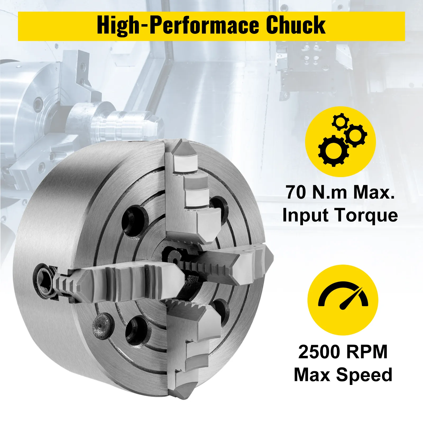 Dieses Metalldrehmaschinenfutter hat präzisen Kanteneingriff und präzisen Backen. Gleichzeitig hat es ein maximales Eingangsdrehmoment von 70 Nm und eine maximale Rotationsgeschwindigkeit von 2500 U/min.