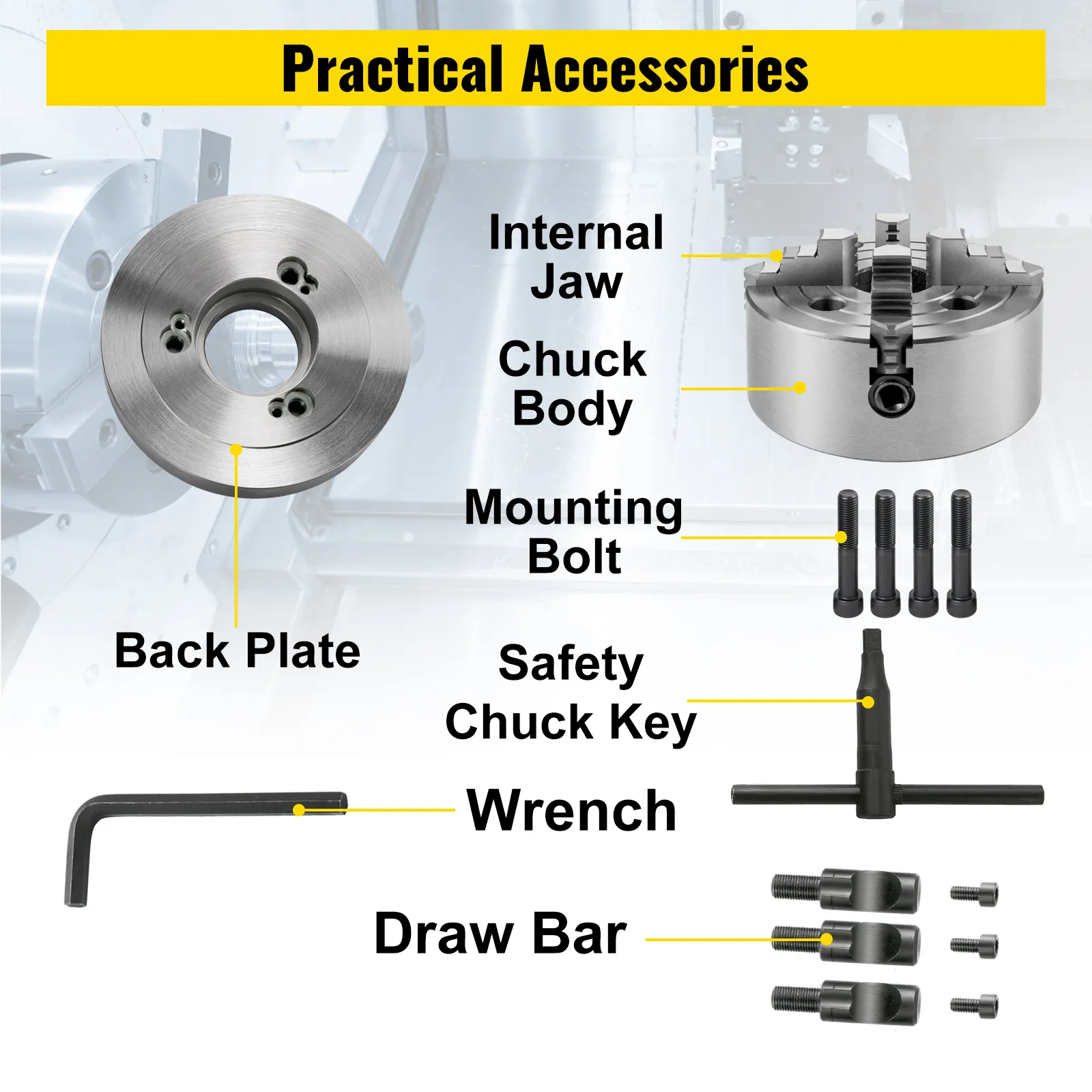 • 【LEICHTE INSTALLATION】 - Es gibt noch ein Anpassungsgerät in der Packung. Sie können das Anpassungsgerät behandeln und auf Ihrer Drehmaschine installieren. Einen Sicherheitsschlüssel und Befestigungsschrauben ermöglichen einfache, schnelle und bequeme Installation.
