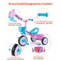 Die EVA-PP-Räder sorgen für eine angenehm leise Fahrt und dämpfen Vibrationen effektiv ab. Zudem ist das Dreirad für Kleinkinder mit einem Aufbewahrungskorb und einem Getränkehalter für kleine Gegenstände ausgestattet.