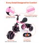 Die EVA-PP-Räder ermöglichen eine leise Fahrt und fangen Vibrationen sanft ab. Zusätzlich verfügt das Kinderdreirad über einen praktischen Aufbewahrungskorb sowie einen Getränkehalter für kleines Spielzeug oder Utensilien.