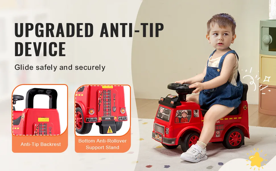 Das VEVOR-Ride-Racer-Spielzeug verfügt über eine breite Rückenlehne und eine Anti-Rückwärts-Stützstange. Dieses Design verhindert ein Umkippen während der Fahrt. Eltern können sich darauf verlassen, dass ihr Kind sicher ist. Das Anti-Rückwärts-Design sorgt für eine sichere und stabile Fahrt. Es ist logisch konzipiert, um die allgemeine Sicherheit des Spielzeugs zu verbessern. Es ist also zuverlässig für Eltern, die ein sicheres Aufsitzspielzeug für ihr Kind suchen.