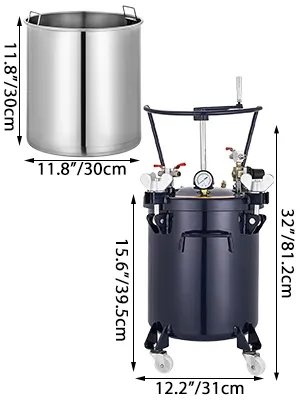 5-Gallonen-Drucktopf verfügt über ein Isolationsnetz, um Verunreinigungen zu isolieren; die Rührklinge kann die Farbe rühren, um ungleichmäßige Beschichtungsniederschläge zu vermeiden.