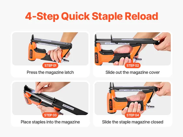 Hohe Ladekapazität: Unser Drucklufttacker verfügt über ein Magazin mit großer Kapazität, das bis zu 150 Klammern gleichzeitig aufnehmen kann und so effizientes Arbeiten ohne häufiges Nachladen gewährleistet. (Heftklammern nicht im Lieferumfang enthalten; bitte separat erwerben)