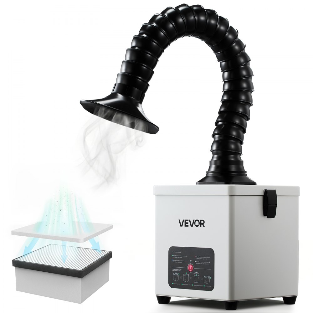 Let VEVOR solder fume extractor enhance your soldering experience. Featuring 3-stage filtration, a durable brushless motor, up to 180 m³/h strong airflow, and adjustable suction, it efficiently captures soldering smoke to help keep your workspace clean, comfortable, and efficient.