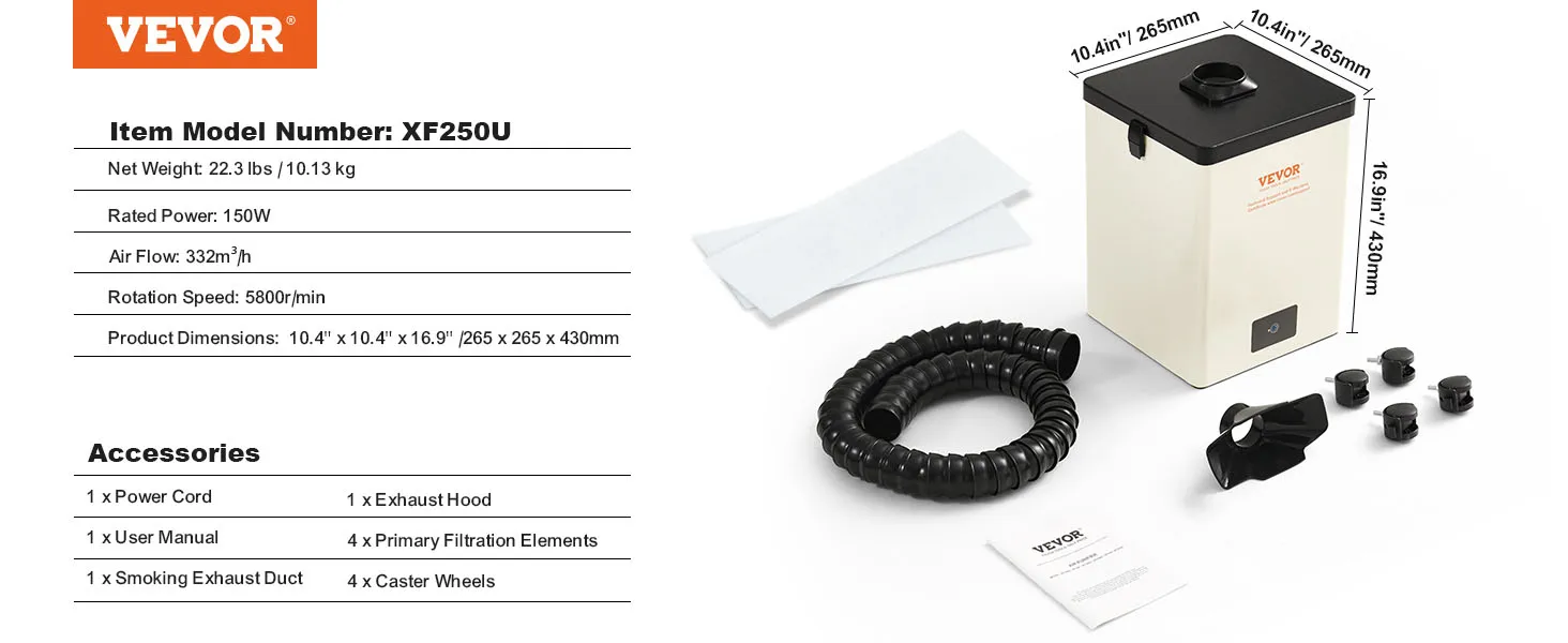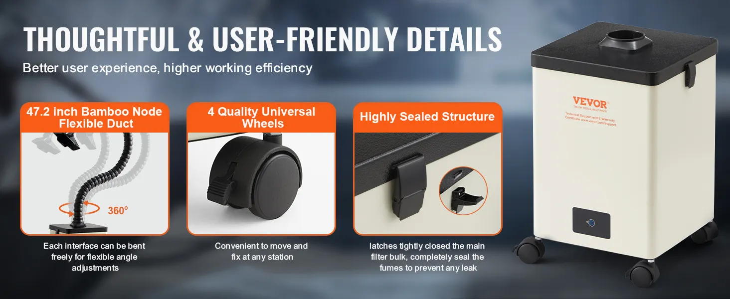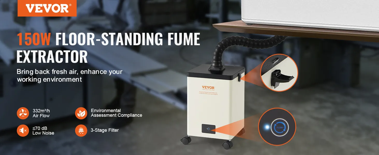 Mit dem leistungsstarken 150-W-Motor und dem 332 m³/h starken Luftstrom kann VEVOR Lötrauchabsauger Rauch und schädliche Partikel schnell entfernen. Das 3-stufige Filtersystem und die Reinigungsrate von 99,99 % sorgen dafür, dass Ihr Arbeitsbereich sauber, sicher und gesund bleibt.