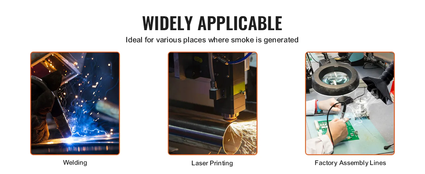 Unser Lötrauchabsorber hat eine kompakte Größe und nimmt nur wenig Platz ein. Geeignet für verschiedene Rauch-erzeugende Räume zur Rauchbeseitigung, Staubabsorption, Laserrauchreinigung, Schadgasbeseitigung, Schönheitssalons, Nagelstudios, Druckereien und Schweißereien.