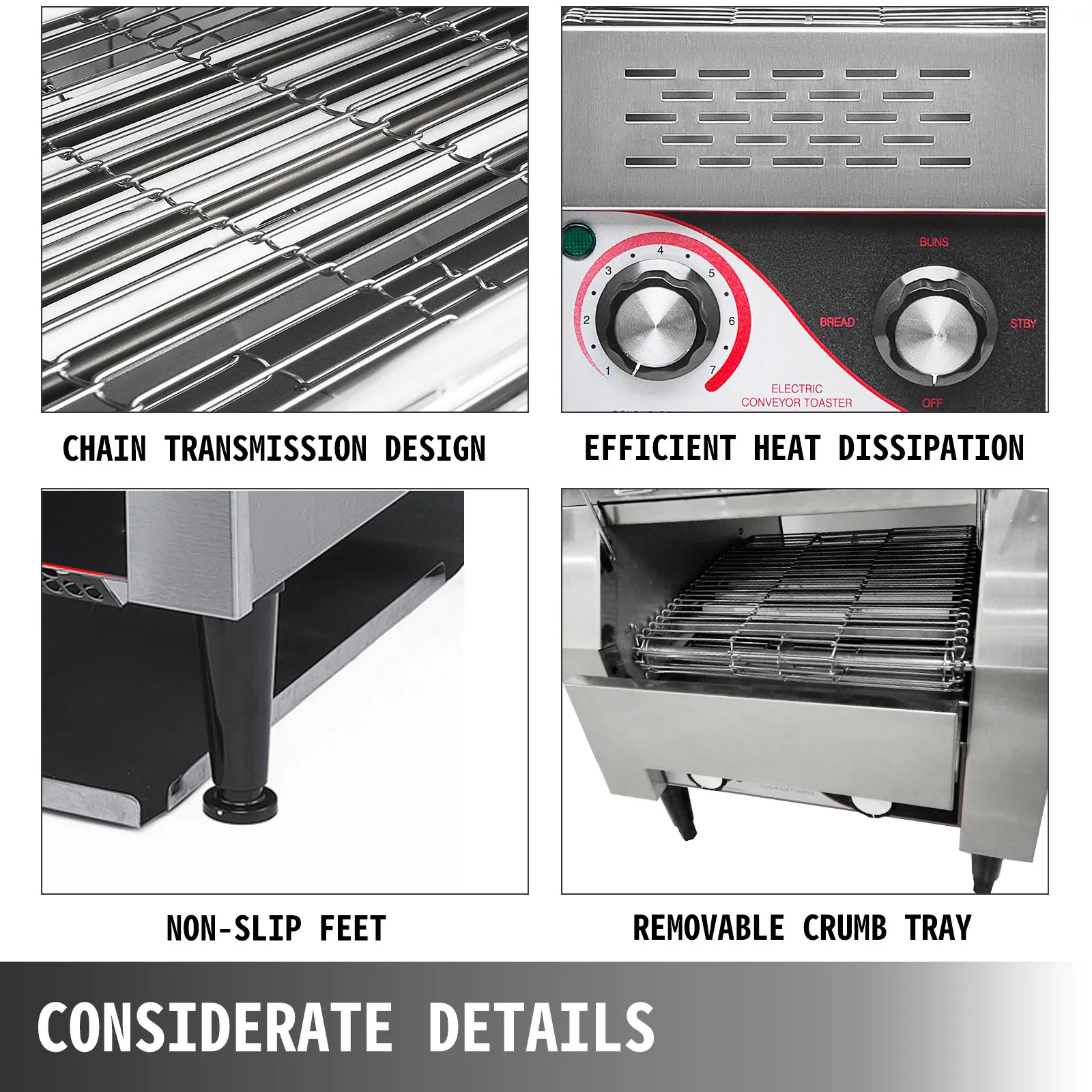 Einfach in der Anwendung, indem Sie einfach das Brot einfüllen, um einen perfekten Toast herzustellen. Perfekt für Cafés, Buffets und Coffeeshops zu verwenden, besonders während des morgendlichen Mahlzeitenansturms!