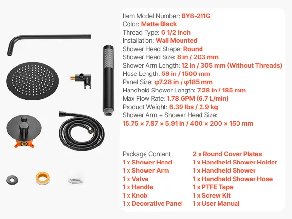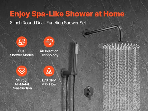 Hochdruckdusche: Unser Duschsystem mit Doppelfunktion bietet ein luxuriöses Erlebnis mit Lufteinspritztechnologie und sorgt selbst bei niedrigem Wasserstand für hohen Druck. Sparen Sie Wasser mit einer Durchflussrate von 1,78 GPM (6,7 L/min) und genießen Sie eine entspannende Spa-Dusche