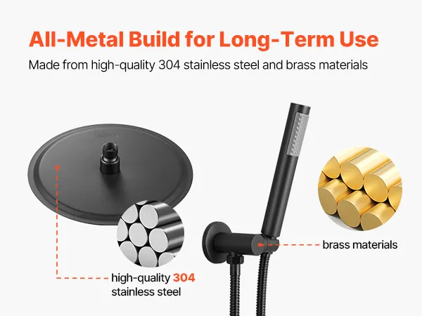 Robuste Ganzmetallkonstruktion: Dieses Duscharmatur-Set aus langlebigem Edelstahl, Messing und Zinklegierung ist unempfindlich gegen Fingerabdrücke und Wasserflecken. Es ist leicht zu reinigen und verleiht jedem Badezimmer eine elegante Note – perfekt für Apartments, Hotels und Pensionen