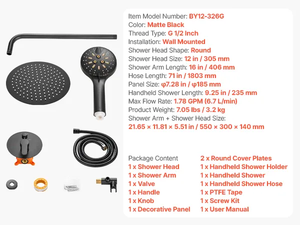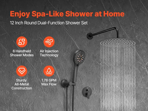Hochdruckdusche: Unser Duschsystem mit Doppelfunktion bietet ein luxuriöses Erlebnis mit Lufteinspritztechnologie und sorgt selbst bei niedrigem Wasserstand für hohen Druck. Sparen Sie Wasser mit einer Durchflussrate von 1,78 GPM (6,7 L/min) und genießen Sie eine entspannende Spa-Dusche