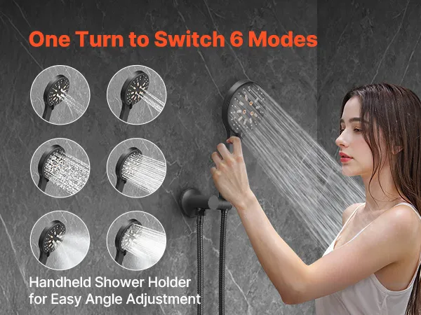 6 Handbrausen-Modi: Wechseln Sie einfach zwischen 6 Duschmodi mit dem Drehknopf. Der ergonomische Griff sorgt für bequemen Halt. Der verstellbare Halter und der 71 Zoll (1,8 m) lange Edelstahlschlauch eignen sich ideal für die Reinigung von Haustieren, Babys und schwer erreichbaren Stellen