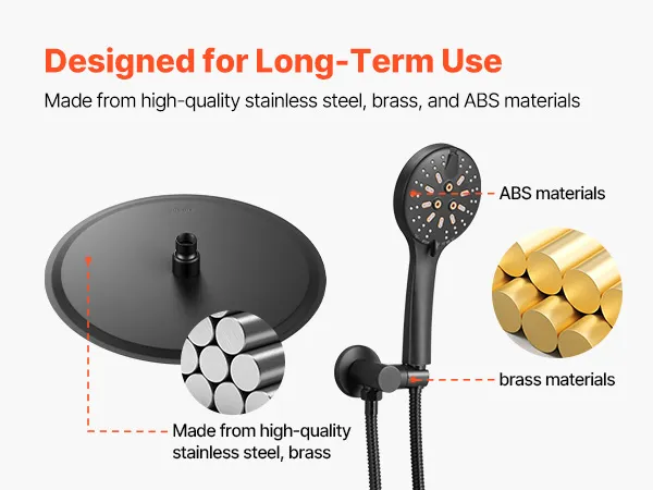 Robuste Konstruktion: Dieses Duscharmatur-Set aus robustem Edelstahl, Messing, Zinklegierung und ABS ist unempfindlich gegen Fingerabdrücke und Wasserflecken. Es ist leicht zu reinigen und verleiht jedem Badezimmer eine elegante Note – perfekt für Apartments, Hotels und Pensionen
