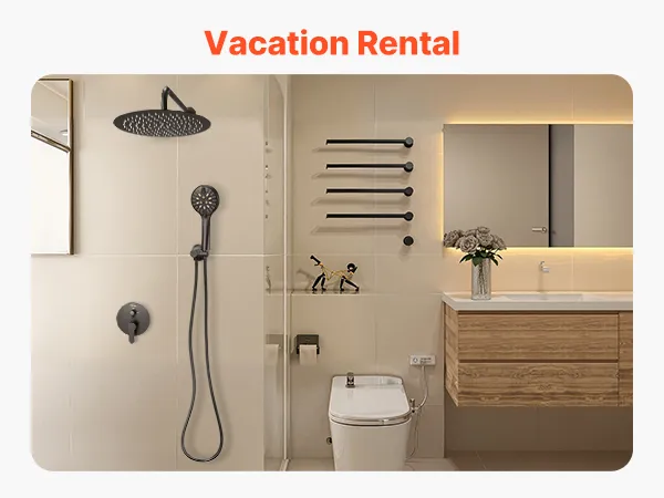 Unser Duschsystem mit Doppelfunktion bietet sowohl Regen- als auch Handbrausen und sorgt selbst bei niedrigem Wasserstand mit hohem Wasserdruck für ein erfrischendes, entspannendes Duscherlebnis.