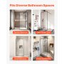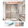 VEVOR feststehende Duschwand aus Glas (864 x 1870 mm) rahmenlos, 8 mm dicke, klare Sicherheitsglastür mit Bodendichtung und Beschlägen, Duschtrennwand Duschabtrennung für Badezimmer, Mattschwarz