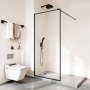 Eleganter Aluminiumrahmen mit Stützstange: Unsere feststehende Glasduschabtrennung verfügt über einen hochwertigen Aluminiumrahmen und eine kürzbare Stützstange. Dies gewährleistet eine stabile Installation, erhöhte Langlebigkeit und dauerhafte Leistung ohne Wackeln oder Verbiegen