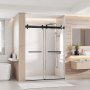 Einfache Montage & zuverlässiger Schutz: Die doppelte Schiebetür für die Dusche mit Edelstahlgriffen ermöglicht flexiblen Zugang und bietet Platz zum Aufhängen von Handtüchern. Alle Teile sind deutlich beschriftet, sicher verpackt und werden mit einer einfachen, bebilderten Montageanleitung geliefert