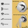 • 【FUNKTIONSUMSCHALTUNG & EINSTELLUNG】 - Der erste Knopf in der Mitte des Duschkopfes dient zur Einstellung der Duschmodi und der Textur auf der Oberfläche zur Anzeige der Modi. Der untere Wasserhahn ist für die freie Kontrolle der Wassertemperatur und Wasserauslassmenge.