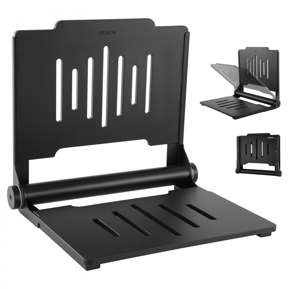 VEVOR Klappbarer Duschsitz zur Wandmontage (496 x 417 mm Sitzfläche), Wandklappstuhl mit Stützender Rückenlehne, Duschsitz (180 kg Belastbar) für Erwachsene & Senioren, Geeignet für Badezimmer & Flur