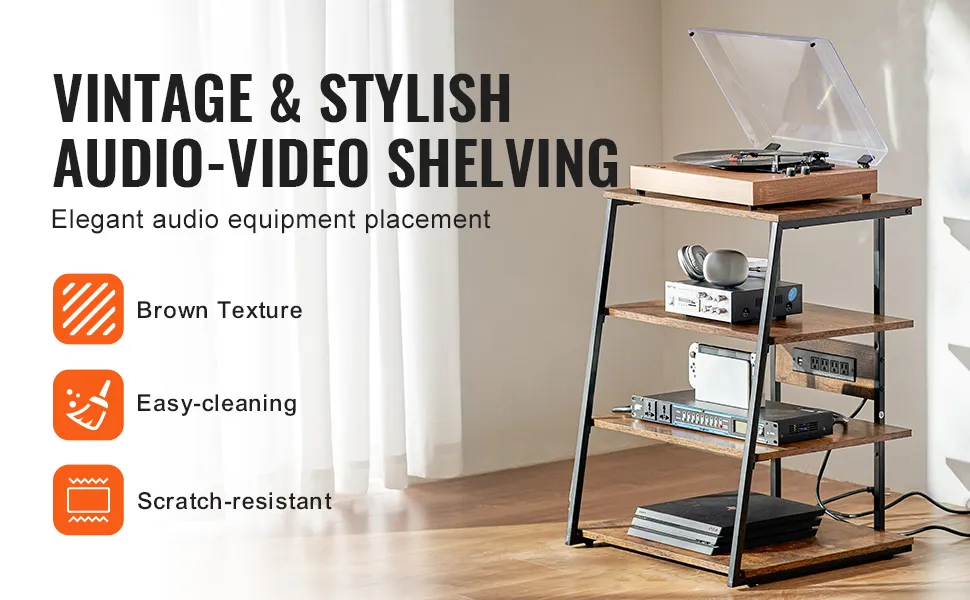 Stilvolles Retro-Design: Mit seinem Vintage-Design mit brauner Holzmaserung verleiht dieses Stereo-Audio-Rack Ihrem Raum einen Hauch klassischer Eleganz und verbessert die Ästhetik jedes Zimmers.