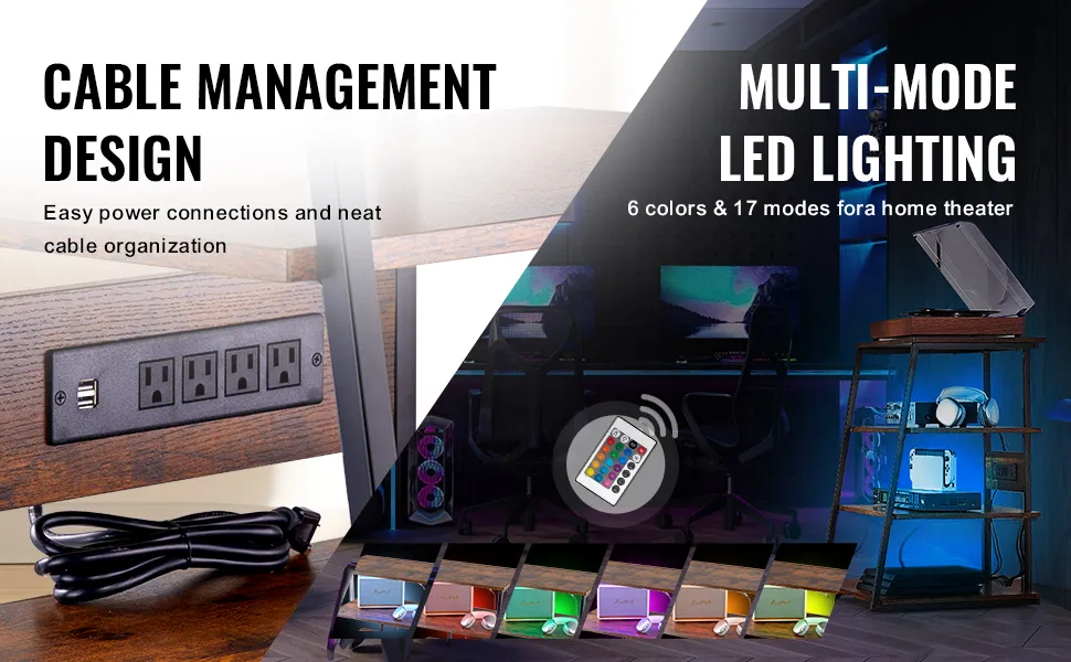 Ausgestattet mit 6 Farben und 17 Lichteffekten können Sie mit diesem Rack eine individuelle Heimkino-Atmosphäre schaffen und die Beleuchtung Ihren Vorlieben anpassen.