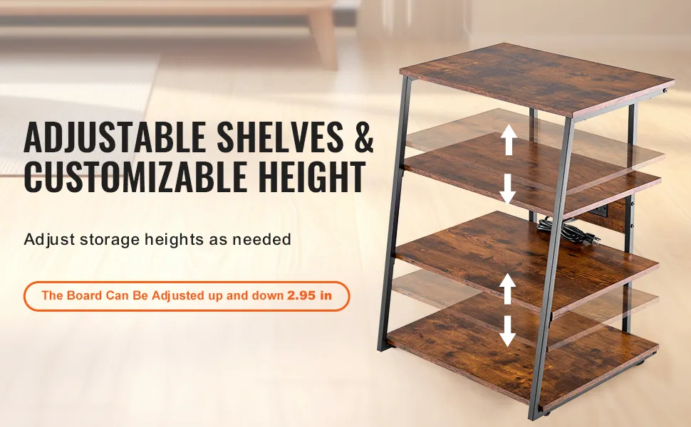 Verstellbare Regalböden: Die Regalböden sind in der Höhe um 2,95 Zoll (74,93 mm) verstellbar, sodass Sie den Stauraum für verschiedene Audiogeräte individuell anpassen und die Anordnung nach Ihren Bedürfnissen optimieren können.