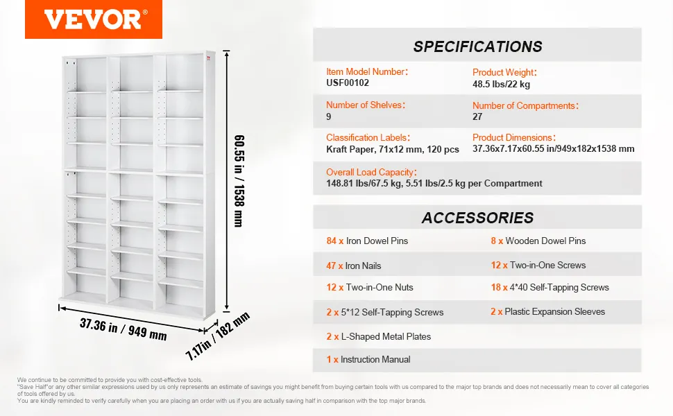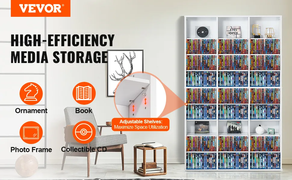 Der VEVOR DVD-Schrank hat einen geräumigen Innenraum. Er bietet bequem Platz für 756 CDs. Dies maximiert die Lagerkapazität auf begrenztem Raum und macht ihn ideal für Personen mit umfangreichen Sammlungen. Sie können alle Ihre Medien an einem Ort aufbewahren. Die effiziente Raumausnutzung sorgt dafür, dass kein Durcheinander entsteht. Die große Lagerkapazität ist von großem Wert. Perfekt für begeisterte Sammler. Das Design des Schranks ermöglicht einen einfachen Zugriff auf alle gelagerten Gegenstände. Die geräumigen Fächer verhindern Überfüllung. Dies trägt dazu bei, die Qualität Ihrer Sammlung zu erhalten.