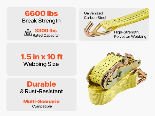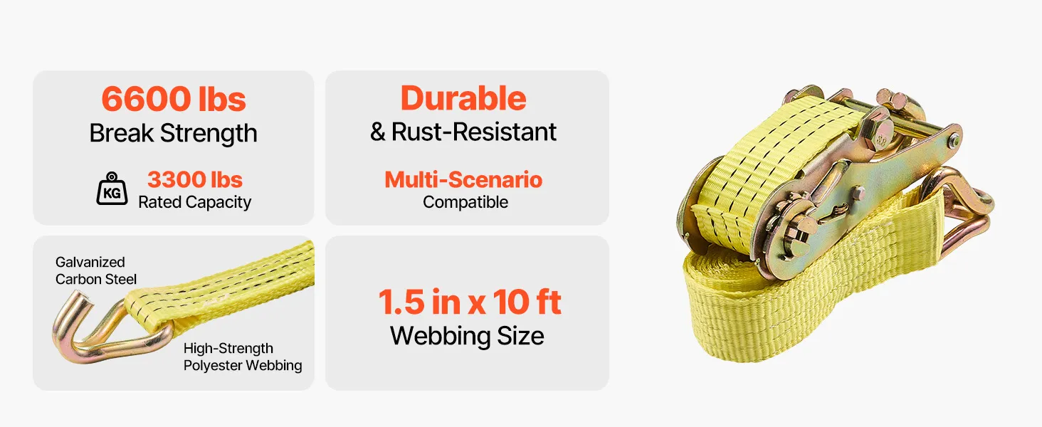 Extrem hohe Belastbarkeit: Dieser Ratschengurt bietet eine Arbeitslast von 1500 kg (3300 Pfund) und eine Bruchlast von 3000 kg (6600 Pfund), sodass Ihre Ausrüstung auch bei Stößen und Erschütterungen sicher an ihrem Platz bleibt. Ideal für Fahrräder, Werkzeug und sperrige Kisten.