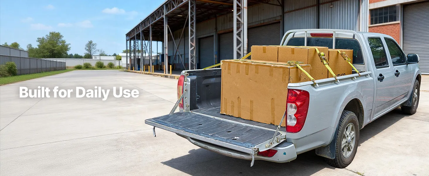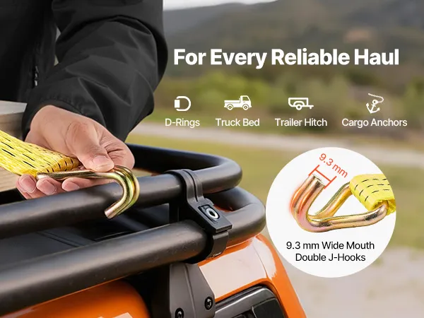 Schnellverschluss-fähig: Die breiten Doppel-J-Haken lassen sich schnell an LKW-Reling, Anhänger-Zurrpunkten und D-Ringen befestigen. Der Ratschen-Zurrgurt lässt sich leicht festziehen und sichert Ladung beim Transport von Möbeln, Outdoor-Ausrüstung und Geräten zuverlässig.