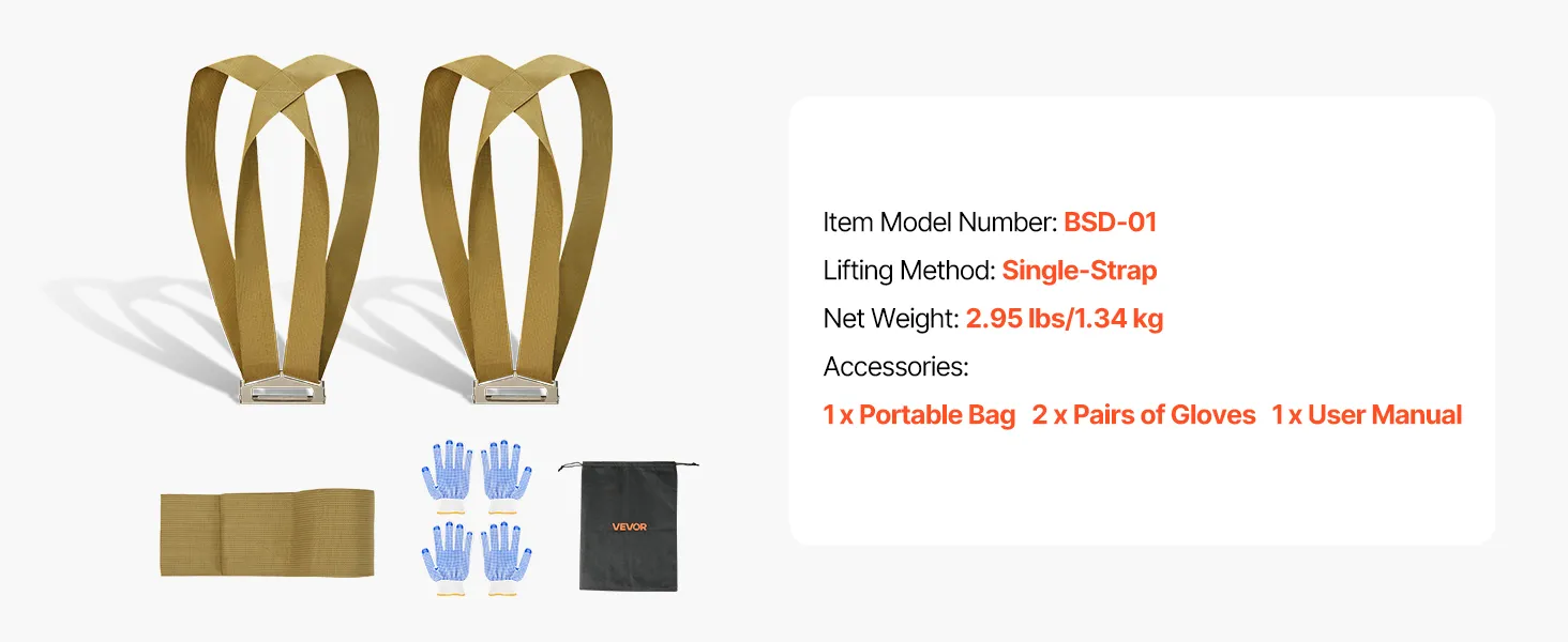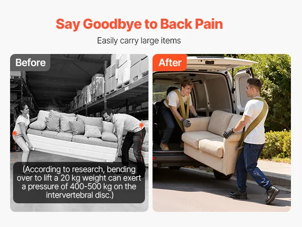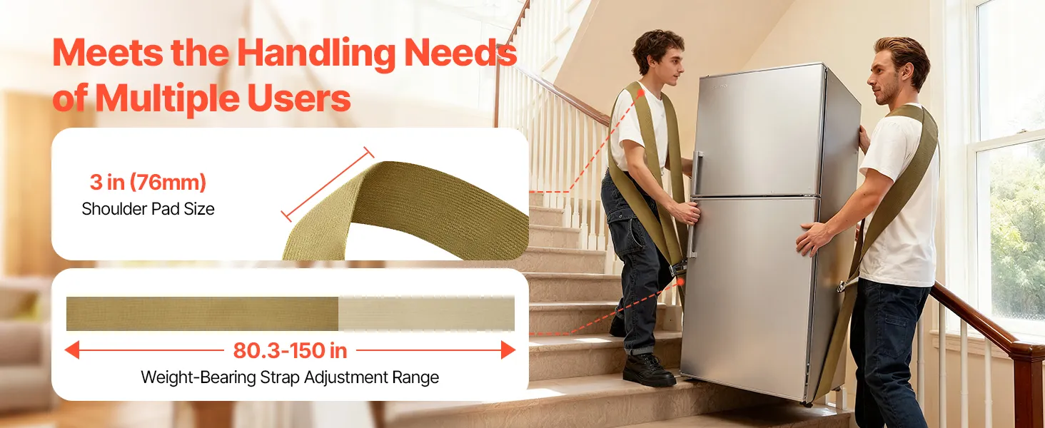 VEVOR Tragegurte, unterstützt bis zu 453,6 kg, 2-Personen-Hebe- und Transportsystem, verstellbare Hebe-Schultergurte, Möbeltransportgurt zum Bewegen von Möbeln, Geräten und Matratzen