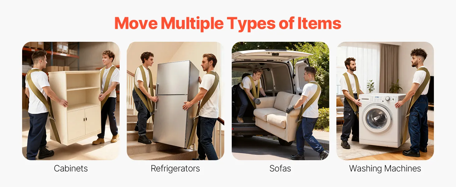 Unser Kühlschrank-Transportgurt eignet sich für den privaten, gewerblichen und Bürogebrauch und erleichtert das Bewegen großer Gegenstände wie Schränke, Sofas, Kühlschränke und Waschmaschinen. Er reduziert Stress und Risiken beim Heben und ermöglicht Ihnen, Aufgaben im Alltag und bei der Arbeit effizienter zu erledigen.