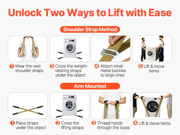 VEVOR Umzugsgurte, unterstützt bis zu 454 kg, 2-Personen-Hebe- & Transportsystem mit 2 Gurten & 2 Traggurten, verstellbare Hebe-Schultergurte zum Bewegen von Möbeln, Geräten &d Matratzen