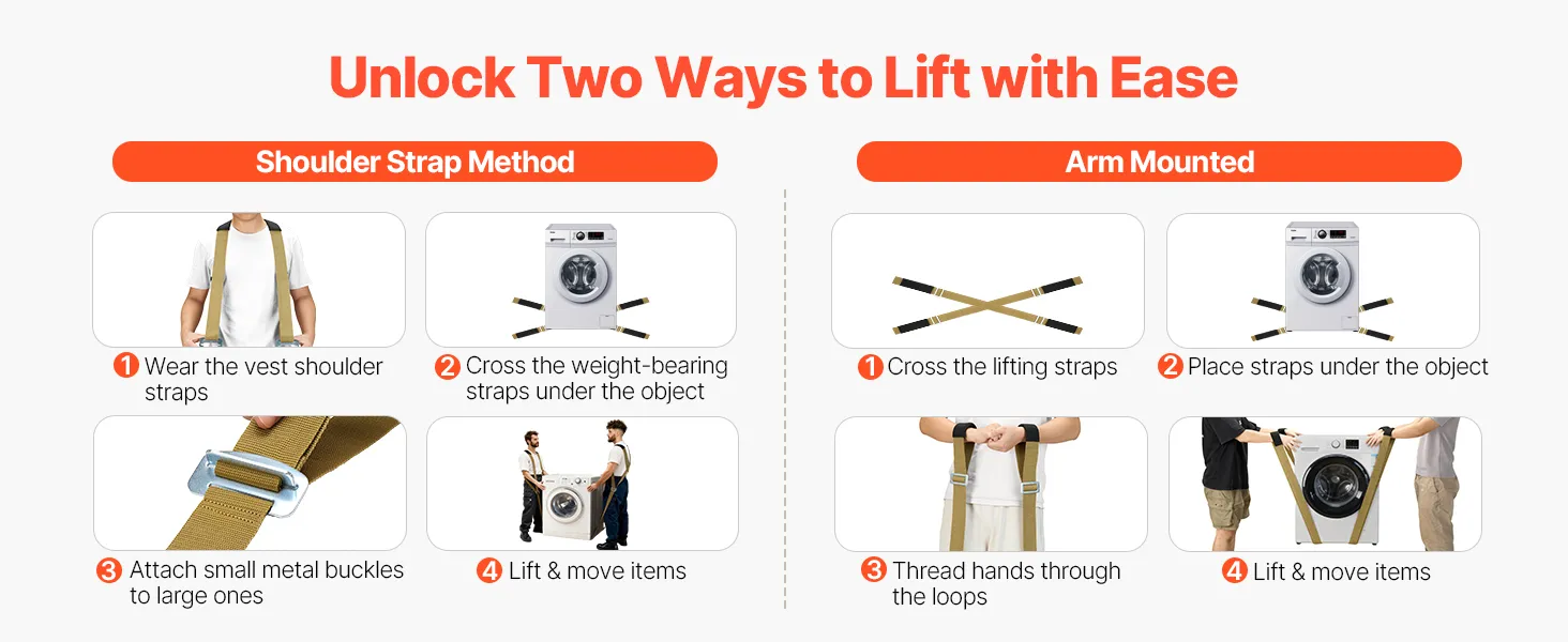 Die Verwendung einer Unterarmschlinge verbessert die Effizienz erheblich und reduziert das Risiko. Im Vergleich zum Heben mit bloßen Händen bietet der Bewegungsgurt stabilen Halt und reduziert das Risiko einer versehentlichen Belastung. Ob große Möbel oder Geräte – Sie können sie sicher und schnell bewegen.