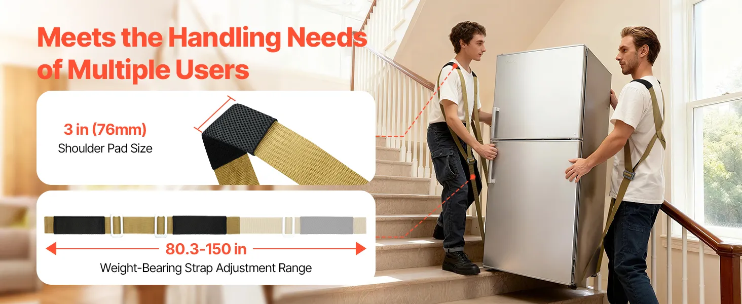 Unser Kühlschrank-Transportgurt eignet sich für den privaten, gewerblichen und Bürogebrauch und erleichtert das Bewegen großer Gegenstände wie Schränke, Sofas, Kühlschränke und Waschmaschinen. Er reduziert Stress und Risiken beim Heben und ermöglicht Ihnen, Aufgaben im Alltag und bei der Arbeit effizienter zu erledigen.