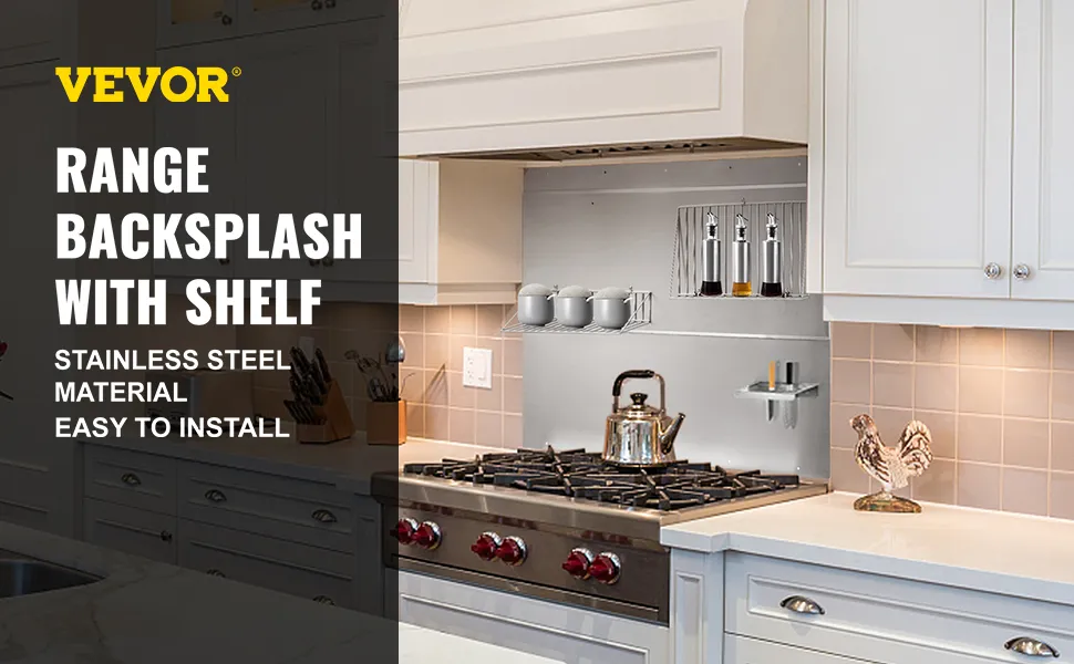 Das glatte, haltbare Edelstahlmaterial sorgt für eine bequeme Reinigung von Kochspritzern. Sie können das Öl schnell vom Backsplash abwischen, viel einfacher als wenn Sie Ihre Wand reinigen müssen.