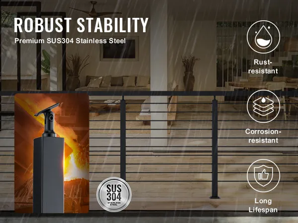 Es ist ein sicherheitsbewusstes Design. Der VEVOR-Kabelgeländerpfosten wurde mit Blick auf die Sicherheit hergestellt. Er ist aus rostfreiem Stahl gefertigt und pulverbeschichtet, was Langlebigkeit gewährleistet. Diese starke Konstruktion bietet Benutzern zuverlässigen Halt. Egal, ob Sie nach einem älteren Familienmitglied oder allgemeiner Sicherheit suchen, dieser Handlauf fällt auf. Es spielt keine Rolle, ob er für Ihren älteren Verwandten oder für den täglichen Gebrauch gedacht ist. Das starke Design sorgt dafür, dass er stabil und sicher bleibt. Wir empfehlen ihn daher als zuverlässige Lösung für alle Ihre Sicherheitsanforderungen!