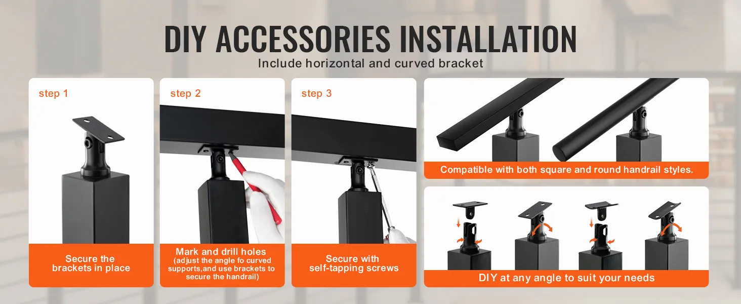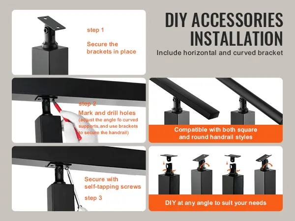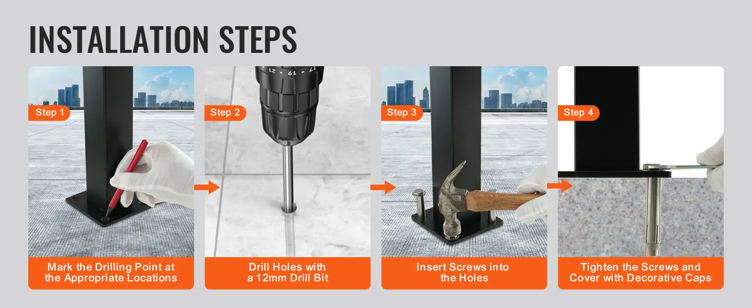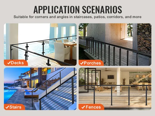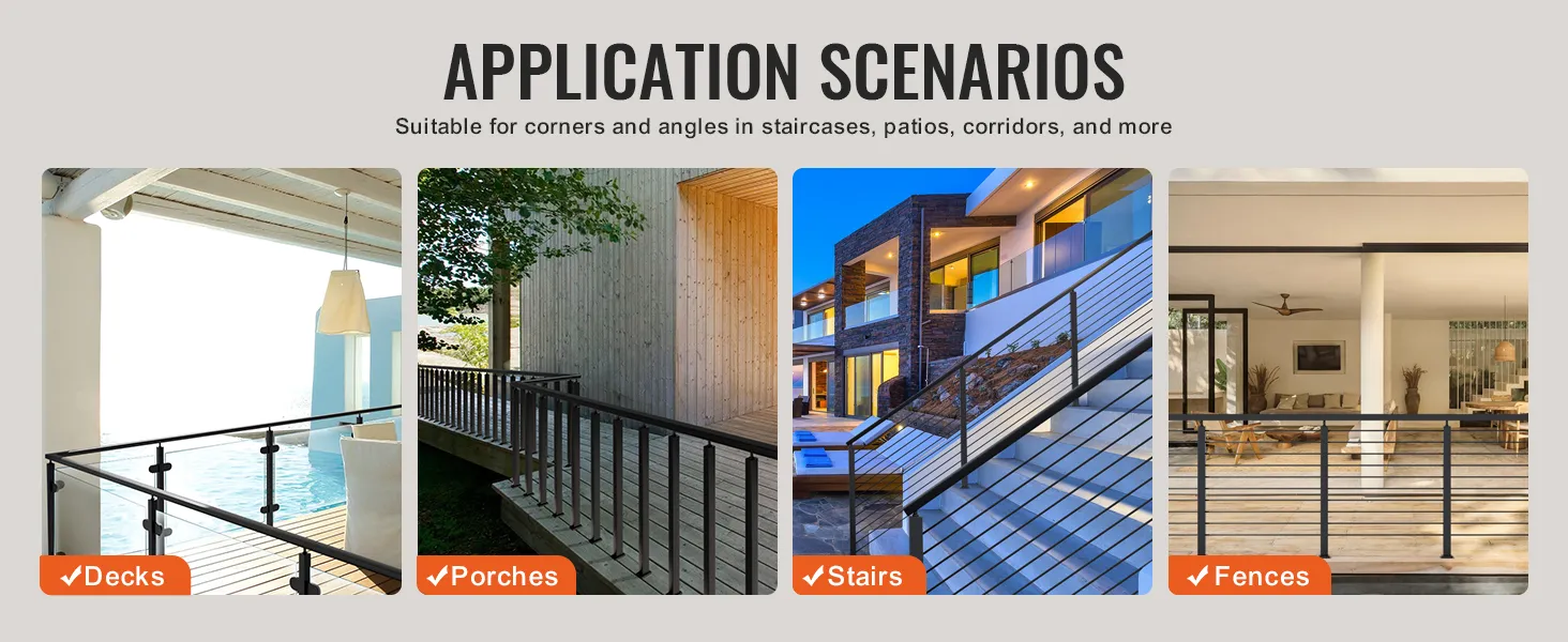 Die Installation des VEVOR-Kabelgeländerpfostens ist kinderleicht. Er wird mit allen erforderlichen Teilen für Holz- und Betonoberflächen geliefert. Dazu gehören Zuganker und Betonankerbolzen. Sie erhalten auch den richtigen Steckschlüssel und Bohrer. Die Anweisungen sind klar und leicht zu befolgen. Die meisten Benutzer können die Installation in weniger als einer Stunde abschließen. Selbst diejenigen ohne fortgeschrittene Heimwerkerkenntnisse finden es machbar. Der Vorgang ist schnell und effizient und spart den Benutzern Zeit und Mühe. Dieser Handlauf ist so konzipiert, dass er perfekt passt. Der Installationsprozess ist also reibungslos und problemlos.