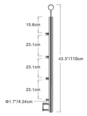 Es handelt sich um einen 110 cm langen Rohrtreppenhandlauf. Das Stahlrohr hat einen Durchmesser von 42,4 mm und das Rundrohr ist im Vergleich zu anderen 2 mm dick. Die Treppenhandlaufbalustrade sorgt für mehr Stabilität.
