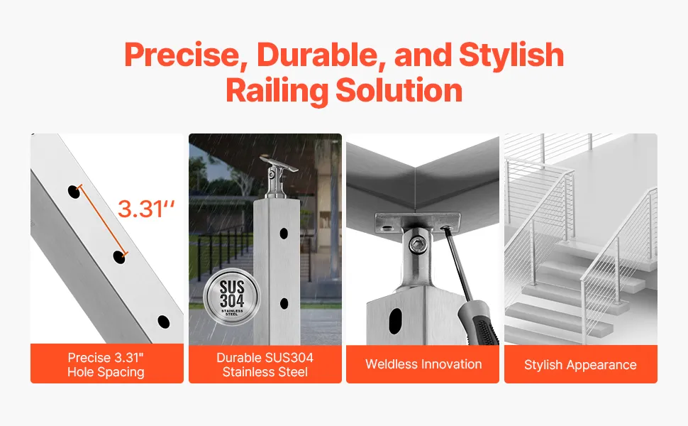 Entdecken Sie den neuen Standard für Geländerpfosten! Unser Kabelgeländerpfosten aus robustem Edelstahl SUS304 bietet Stabilität und Stil. Dank vorgebohrter Löcher und mitgeliefertem Zubehör ist er einfach zu montieren und eignet sich ideal zur Befestigung von Terrassen, Geländern und mehr und erfüllt dabei alle gesetzlichen Vorschriften.