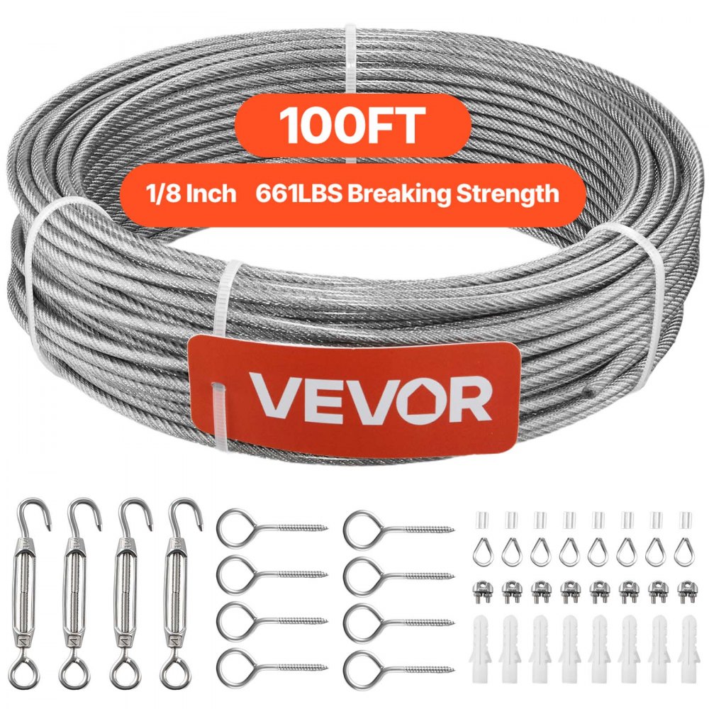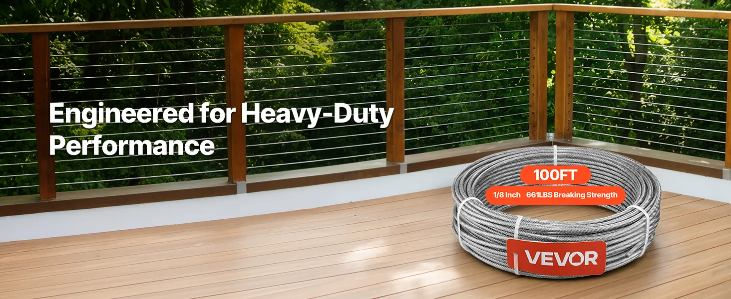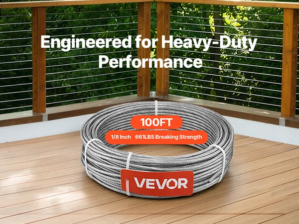 VEVOR Edelstahldrahtseil φ3,2 mm 30,5 m Länge, Drahtseil aus Edelstahl 304 mit einer Bruchlast von 2,94 kN, 7x7 Litzen Stahldraht, Geländerseil für Terrassengeländer, Gartenspaliere