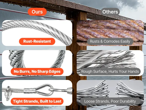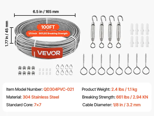 Dieses hochwertige 7x7-Edelstahlkabel (304) mit PVC-Mantel bietet starke, korrosionsbeständige Leistung für Projekte im Innen- und Außenbereich. Es eignet sich für Geländer, Zäune, Rankgitter und Lichterketten – ideal für Hausbesitzer, Gärtner und Heimwerker, die Wert auf sichere, langlebige und effiziente Installationen legen.