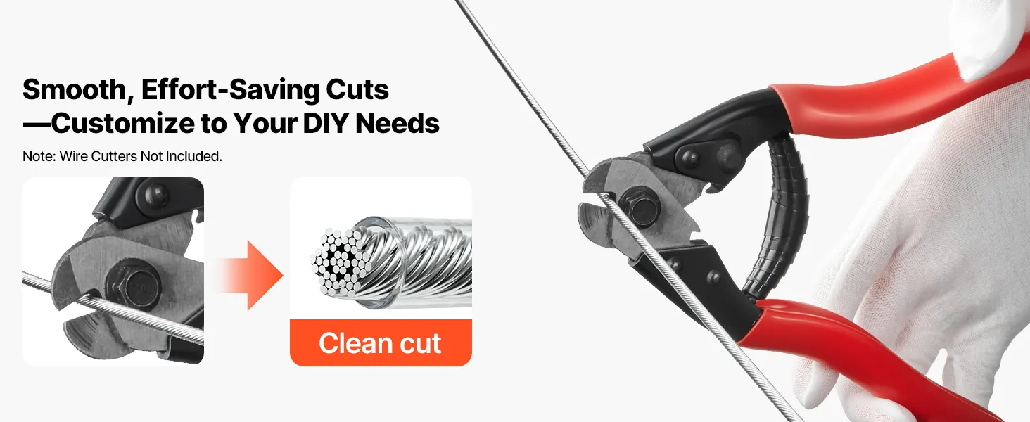 3,2 mm (1/8 Zoll) x 30,5 m (100 Fuß) Kabel: Dieses Stahlkabel bleibt flexibel und bietet gleichzeitig eine hohe Zugfestigkeit. Es eignet sich ideal zum Verlegen von Treppengeländern und für individuelle Installationen. Anschließend kann es für ein sauberes Finish zugeschnitten und verpresst werden