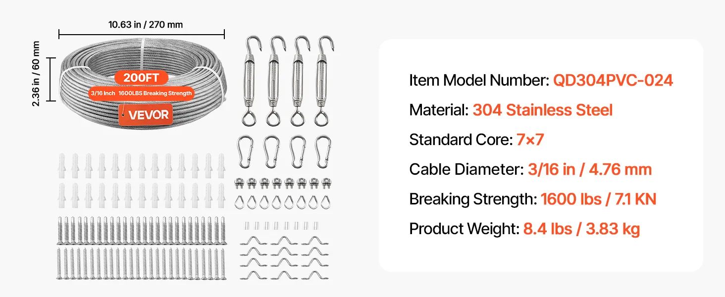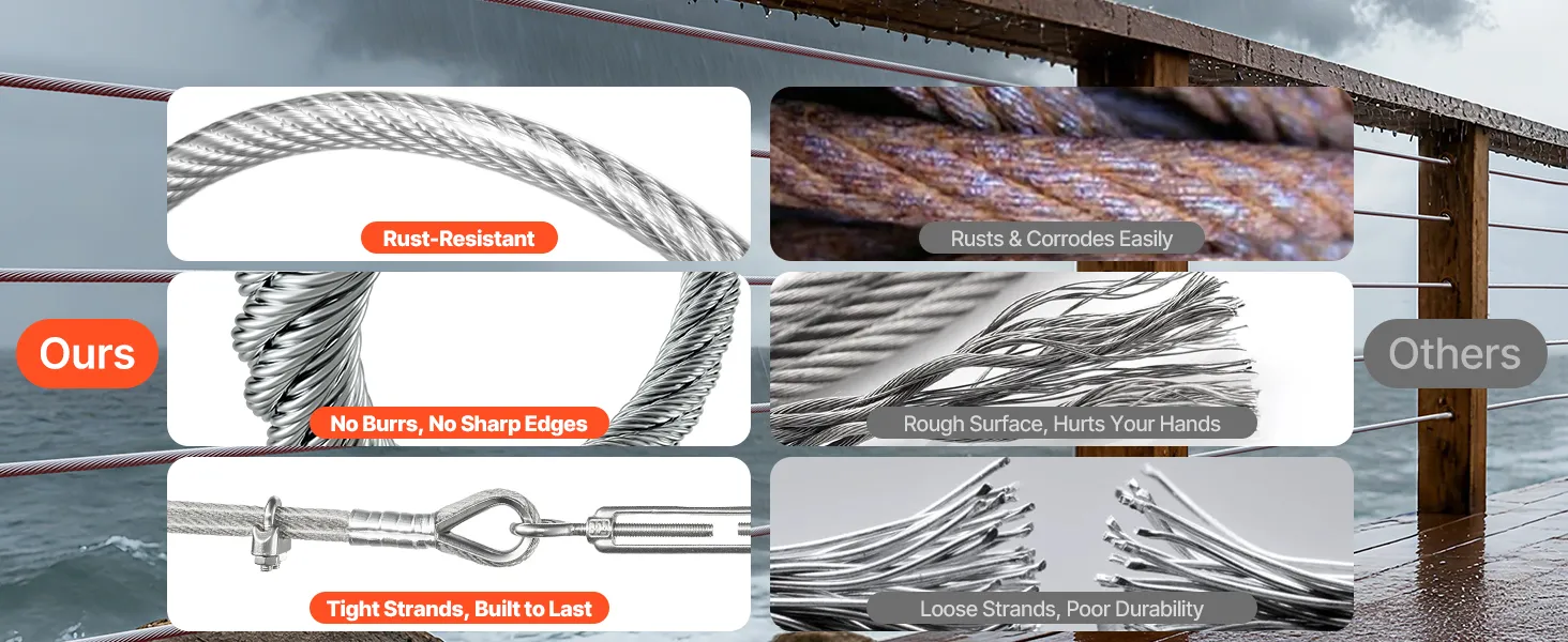 Dieses hochwertige 7x7-Edelstahlkabel (304) mit PVC-Mantel bietet starke, korrosionsbeständige Leistung für Projekte im Innen- und Außenbereich. Es eignet sich für Geländer, Zäune, Rankgitter und Lichterketten – ideal für Hausbesitzer, Gärtner und Heimwerker, die Wert auf sichere, langlebige und effiziente Installationen legen.