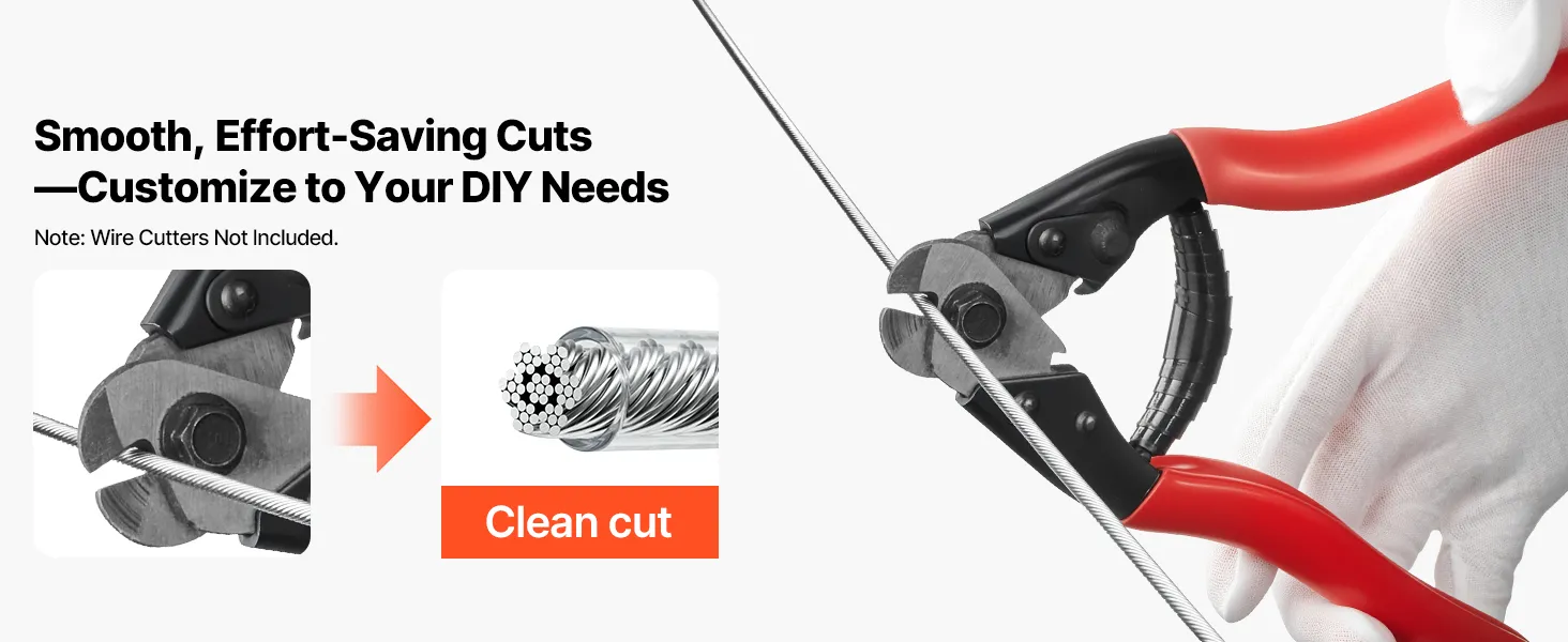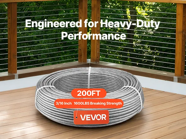 4,76 mm (3/16 Zoll) x 61 m (200 Fuß) Kabel: Dieses Stahlkabel bleibt flexibel und bietet gleichzeitig eine hohe Zugfestigkeit. Es eignet sich ideal zum Verlegen von Treppengeländern und für individuelle Installationen. Anschließend kann es für ein sauberes Finish zugeschnitten und verpresst werden.