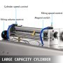 Mit großer Leistung und stabilem Luftdruck unterstützt der Luftzylinder den Füllvorgang gut. Die blaue Taste steuert die Arbeitsgeschwindigkeit des Zylinders, die orange Taste für die Füllgeschwindigkeit. Das Füllvolumen ist über den Schwenkgriff einstellbar.