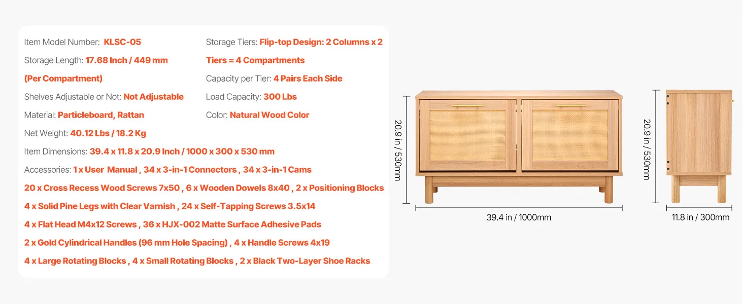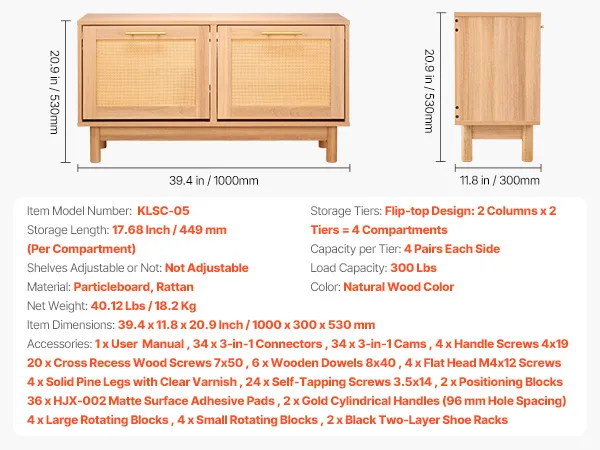 Robuste Konstruktion und langlebige Qualität: Die Schuhablage für den Eingangsbereich verfügt über eine stabile Struktur aus hochwertigem Naturholz, die auf Langlebigkeit getestet wurde. Die Hardwarekomponenten bestehen aus hochwertigen Materialien mit rost- und korrosionsbeständigen Oberflächen und gewährleisten so Langlebigkeit auch in feuchten Umgebungen