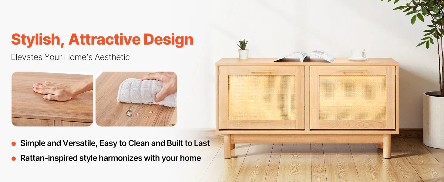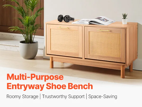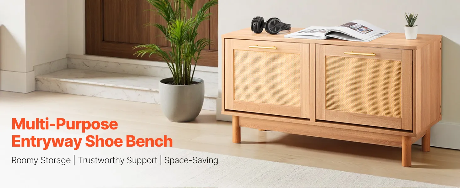 VEVOR Schuhregalbank Schuhbank (100 x 30 x 53 cm), Rattan-ähnliche Eingangsbank mit 2 Klappschubladen, Schuhregal mit 4 Fächern & 2 Rattantüren (136 kg belastbar), für Flur Wohnzimmer Schlafzimmer