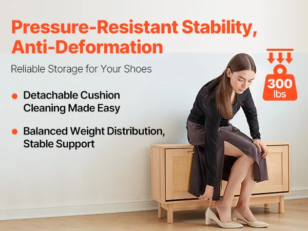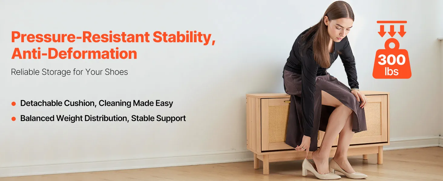 Unsere Schuhbank verfügt über eine robuste, stabile Struktur mit hervorragender Tragfähigkeit. Sie bietet problemlos mehreren Personen Platz, die ohne Verformung oder Beschädigung ihre Schuhe wechseln, und bietet zuverlässigen und dauerhaften Halt.