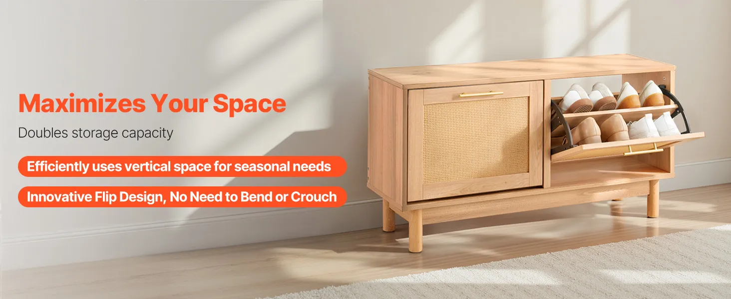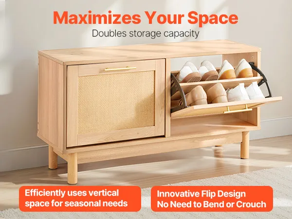 Bequeme Sitzgelegenheit zum Schuhwechseln: Die Oberseite des Schuhschranks ist flach, stabil und äußerst stützend und kann problemlos Gewicht tragen, ohne beschädigt zu werden. Sie dient als bequeme Bank, sodass Sie nicht lange stehen, bücken oder hocken müssen. Ältere Familienmitglieder und Kinder können bequem Platz nehmen, was das Ein- und Aussteigen erleichtert und komfortabler macht